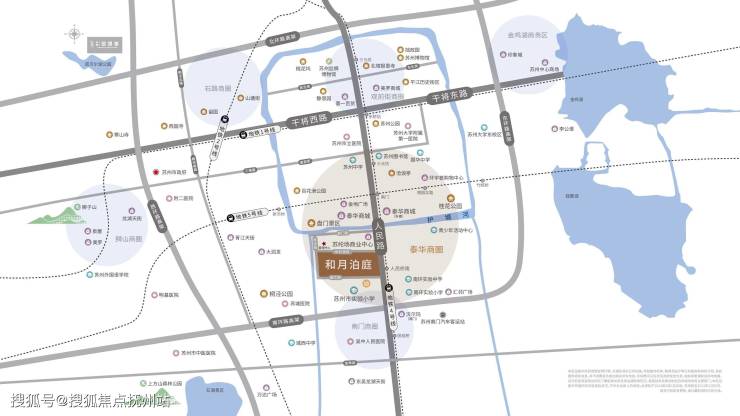 景观:盘门景区、沧浪亭、网师园、桂花公园、百花洲公园、桐泾公园等园林景观环绕,自然与人文资源丰富。