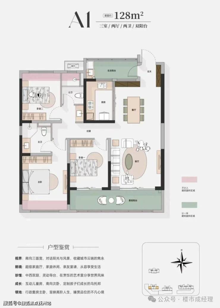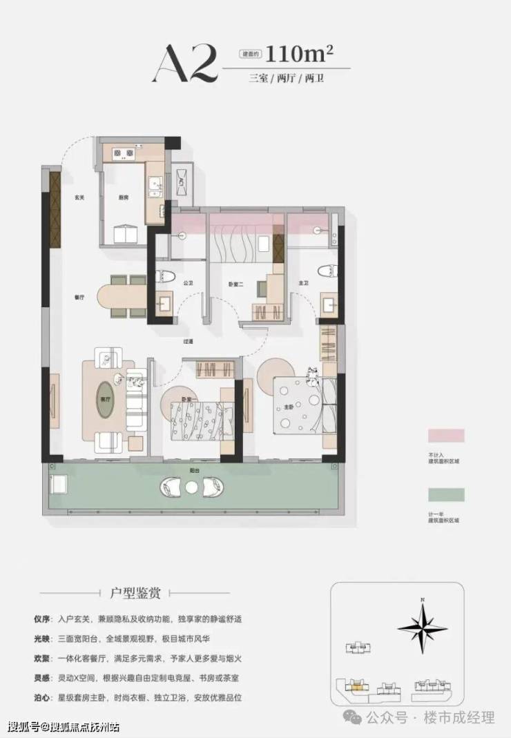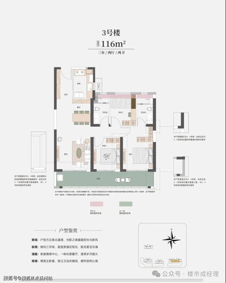准四代大宅:着眼未来标准,超高得房率,三面宽阳台,日照采光、观景体验俱佳