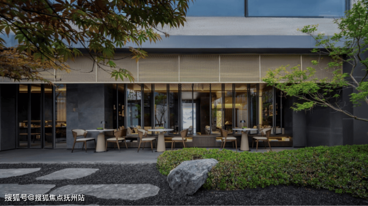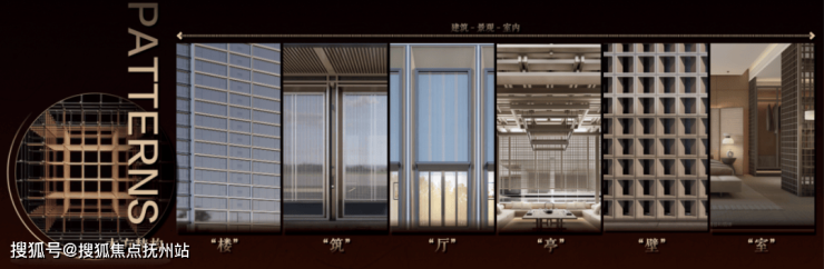 赋系的社区遵循古人追求的上风上水、高门阔府的形制要求与生活习惯。大面宽现代东方风格门头展示,在城市界面上有很好的昭示性。小区主出入口结合主体建筑立面的风格元素,在车库出入口进行呼应强化。