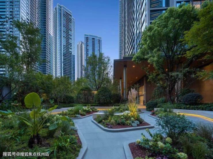 景观则为现代都市度假风格配套,园区绿意与建筑的完美配合,减弱超高层建筑的压迫感,增加园区使用的舒适度,达到居则悦的品质、归则隐的自然,给予客户极致的居住体验。
