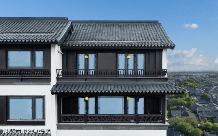 【凤鸣隐庐】的灰瓦坡顶,与小青瓦、通透玻璃、咖色饰板交相辉映,呼应运河岸流传千年的古建名宅,也展现着当代东方的三重神韵,远远望去,宛若吴冠中画中的江南,青山老树,屋舍俨然。