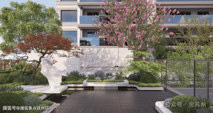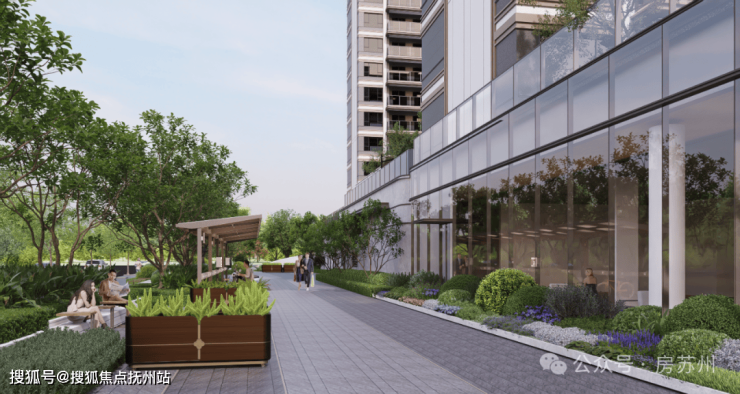 因为全人车分流,留给园林景观的空间也更多,打造约3600㎡立体景观体系。