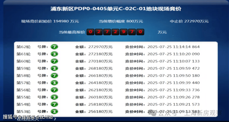 7月25日,上海2025年六批次土拍中浦东唐镇地块,最终由招商蛇口&中旅投资以中止价27.297亿元+商品住宅装修标准不低于4500元/㎡(集采价)+公共服务设施200㎡(计容)+高端人才住房配建比例0.7%竞得地块,成交楼面价52360元/㎡,溢价率40.00%!