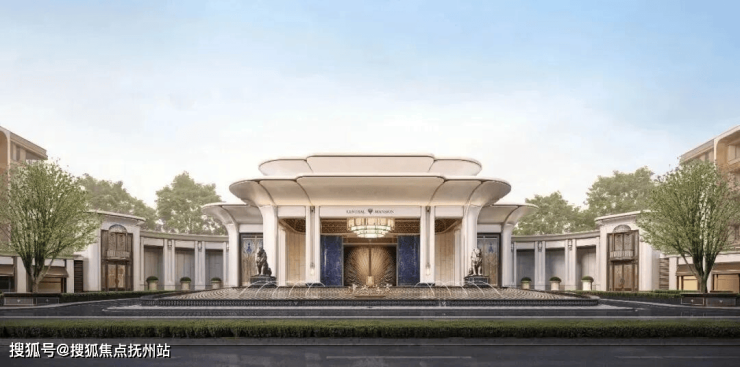 「玉兰门庭」摩登飘逸,环抱式落客前场,大师定制非遗掐丝珐琅门钹,流转温润光华,敬呈归家尊崇礼序,自此启幕生活的华贵序章。