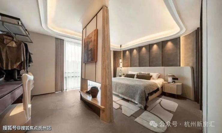 陶砚176㎡户型:取陶砚之自然璞实感,雕琢白冰玉的背景墙,客厅吊顶还原砚台造型,室内饰以瘦金体笔划装饰线条。从太太幸福厨房系统、天使之眼安全监控平台,到宠物清洁站,杭序府用洞察赋智慧以温度,让科技完成从工具到人性的进化。