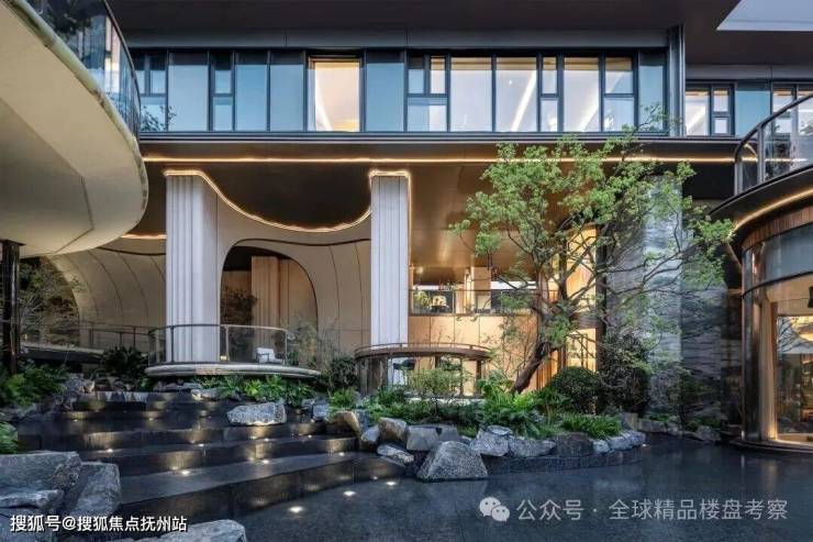 约44米玉阙迎辉主入口,结合潘多拉奢石与红果冬青,营造归家仪式感,"八方来仪"殿堂式立柱拔地而起,弧线向上尽显望族门风永续,站在门口就能感受到扑面而来的豪门气场。