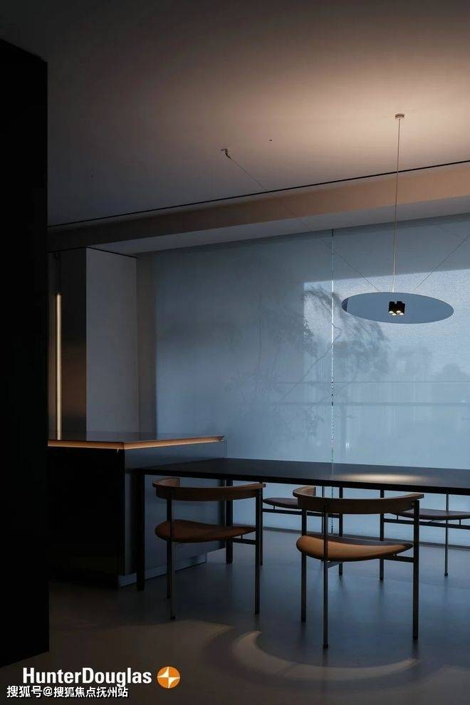 在这里,需要特别介绍一下亨特百叶帘——Creamy(0159),它成为这个空间的灵魂色彩,也是设计师夫妇非常情有独钟的色号。Creamy在设计师眼中,不仅仅是视觉上的,更是一种情绪和氛围的传递者。