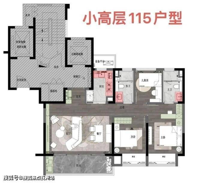 总高约15层2梯2户的小高层,提高居住舒适度,115客厅开间6米左右,精品稀缺户型
