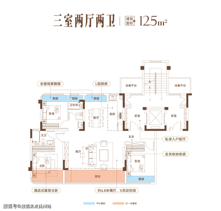 建面约125㎡三房:实现功能与舒适的平衡