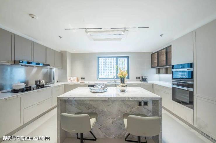 约50㎡的餐厨空间,用包含着许多心意的一日三餐,营造充满温馨和浪漫的多味生活。约20㎡的超大厨房空间采用了中西厨合璧设计,岛台下方的恒温红酒柜、MIELE品牌嵌入式烤箱及蒸炉、西门子中式三眼灶及5D环吸设计烟机、西门子嵌入式洗碗机、嵌入式冰箱等厨房家电的优选配置,让高端成为生活的标配。