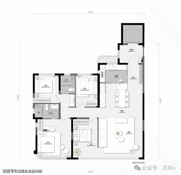高层,119平,四房两房