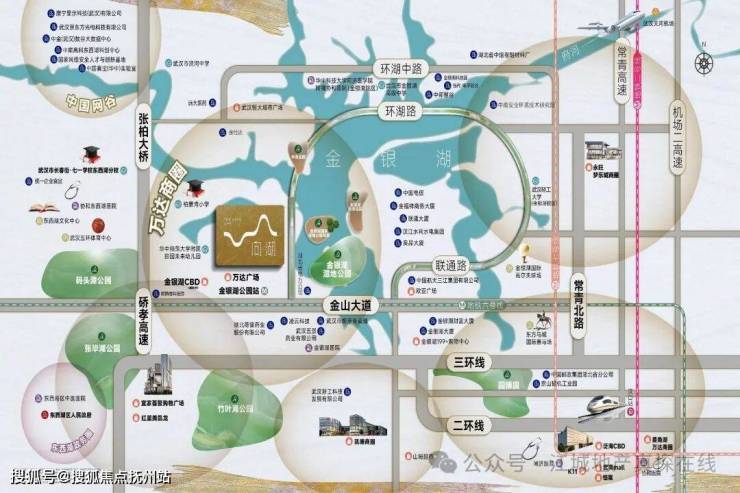 生态绿芯:拥一湖五园,紧邻金银湖,金银湖湿地公园、码头潭公园、武汉园博园、张毕湖公园、竹叶海公园环伺
