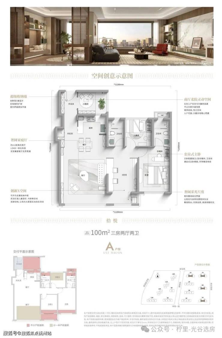 建面约100㎡:妥妥的年轻家庭适用户型,得房率高达113.5%!标准三房两卫、功能齐全,此外还有非常可观的可拓展空间,比如入门处的全明空间,打造花房或者健身房再适合不过了。对于计划扎根光谷的年轻家庭,门槛相对友好;