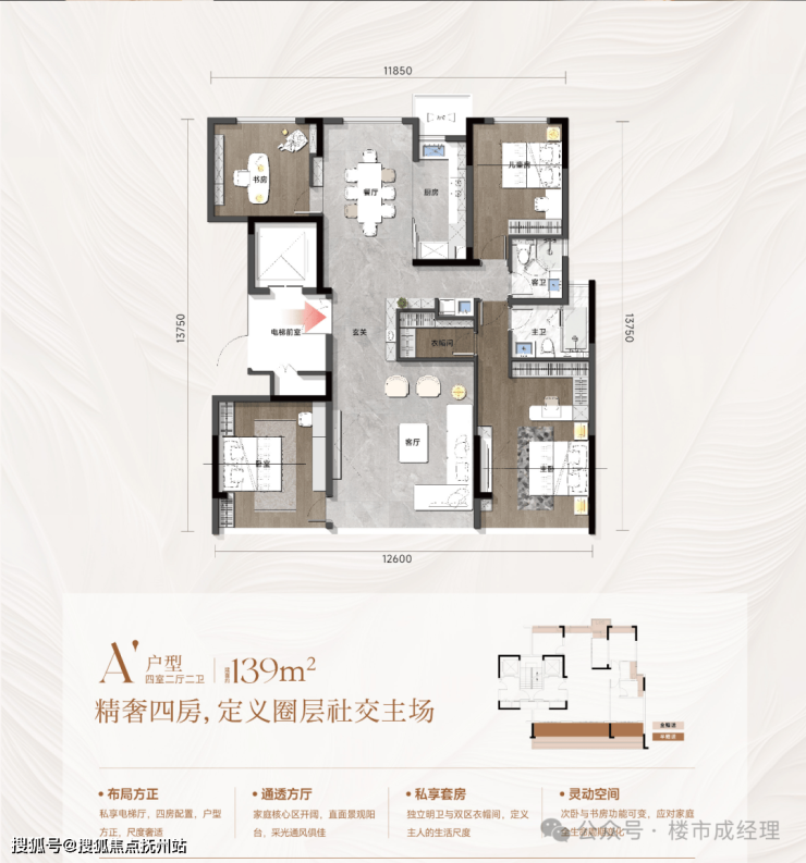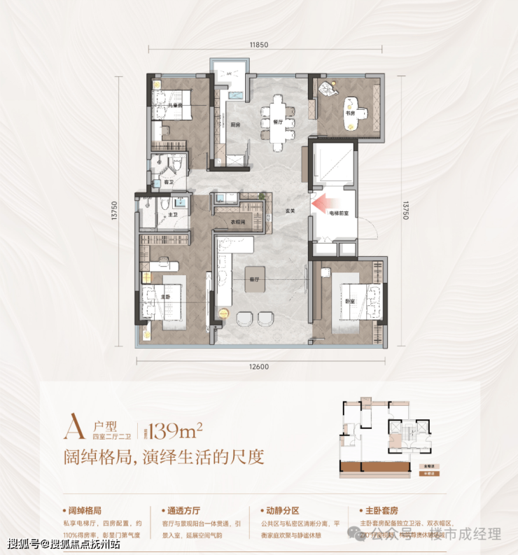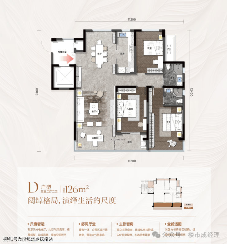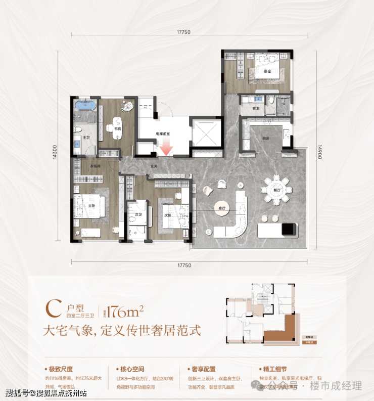 🏠 户型:建筑面积约126-176m²三/四房