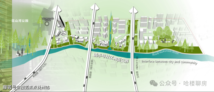 商业:约25万方联投·花山河自运营商业地块,结合三座大桥桥上桥下6大节点+3处滨水生活区,聚落商业组团,丰富多元商业