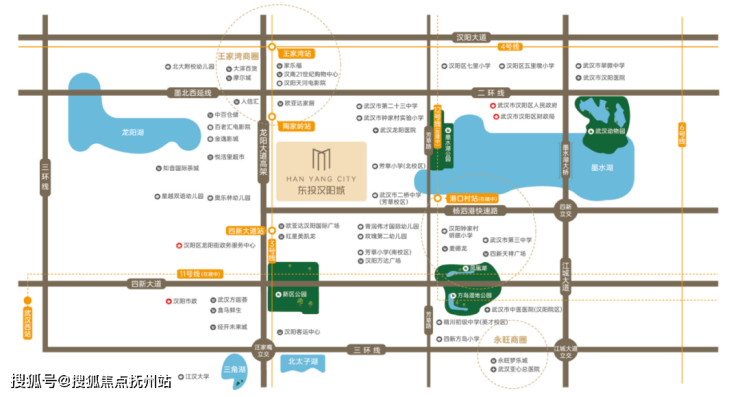 东投汉阳城位于汉阳区杨泗港快速通道四新段与龙阳大道交汇处,在二环与三环之间,杨泗港大桥以北,属于新二环内,地段较好。