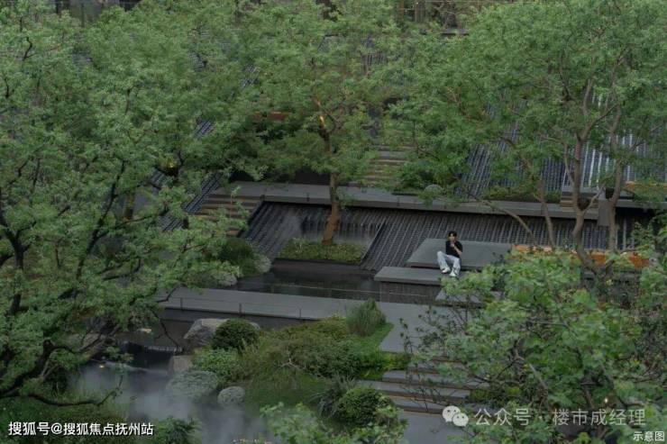 设门、台、水、亭四点成线,借鉴匠法于中央水景巧设全景会客厅,精择朴树、乌桕等名贵植株,引入樱桂枫梅等四季花木,打造立体多维水景园林。