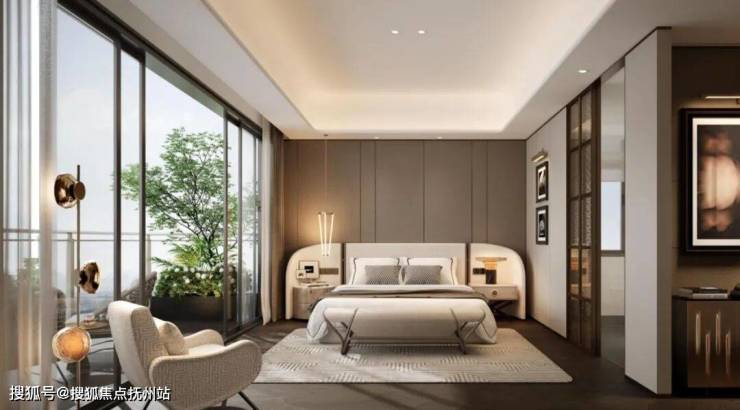 这一层是豪华主卧套,超大衣帽间、双台盆卫浴,再加上南北双露台,空间宽、大、柔和,所有隐私与情绪都能被安放其中。