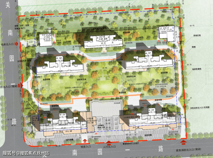 根据规划,项目的总建筑面积约72456.7㎡,计容建筑面积约41355㎡,住宅建筑面积约40529.36㎡,容积率2.1,总户数455户,户均89.07㎡,机动车位551个,车位比约1:1.21。