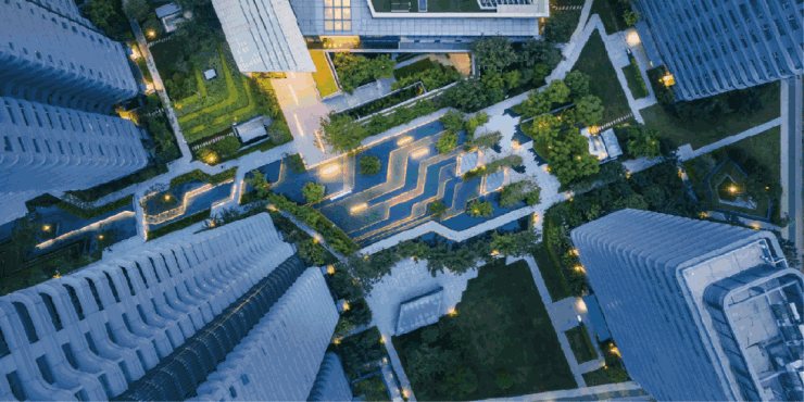 南北地块约5000㎡中庭规制,以去风格化建筑设计理念,打造围合式园林布局。亲水性景观设计让建筑与紫琅湖自然交融,镜面水景倒映四季流转,景观廊架勾勒诗意时光,让度假体验融入日常。