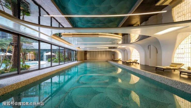 约280㎡室内恒温泳池,如蝴蝶展翼般优雅曲线,根据国际休闲泳池标准精准塑造,通过玻璃栏板与室外景观无缝衔接,一年四季均为业主提供专业级休闲运动场所。