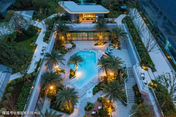 汲取斐济海岛的松弛感与自然风貌,以“漂浮绿洲”为灵感打造悬挑错层戏水池,通过热带植物、休闲区域、功能配置,将度假氛围由内而外呈现,为业主营造“归家即度假”体验的日常海岛模式。