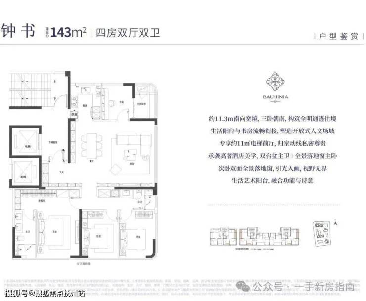 招商紫荆府包含4栋31-32层高层住宅,预计首开1号楼建面约143平房源。
