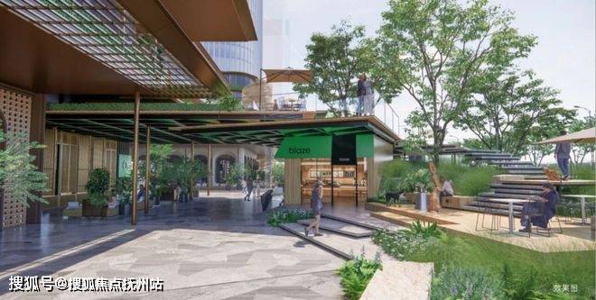 商业街区对标上海鸿寿坊的活化模式,旨在打造一个立体花园式的生活目的地。设计团队坚持将首层层高设定为约6米,远超常规标准,营造出开阔恢弘的“呼吸感”。最具创新性的是,他们精心打造了约450米的立体漂浮观景台阶花园和约60米长的沉浸式亲子休闲区。