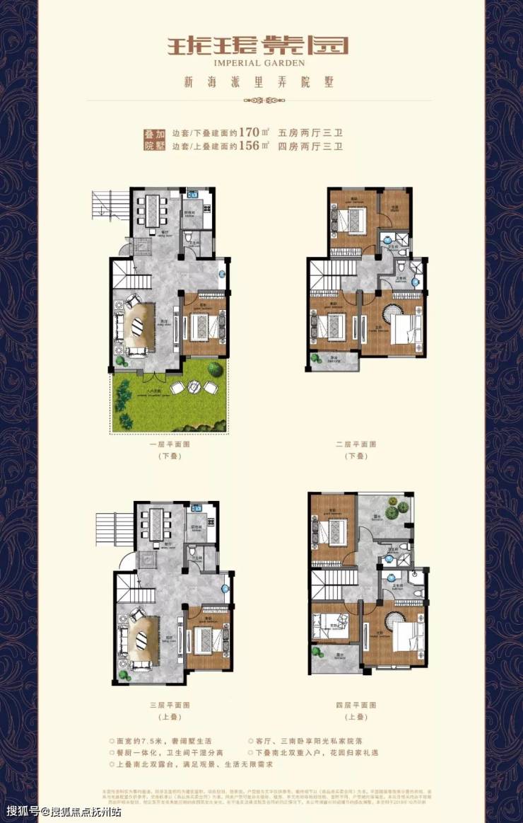 联排院墅200-280㎡三至五房户型,有天有地有庭院。叠加别墅155-170㎡四房户型,7.5米宽墅生活。墅景高层98-140㎡三至四房户型,类一梯两户设计,分离式尊贵入户空间,保证户户全明,南北通透,超宽楼距,享受大墅区生活的尊容空间。