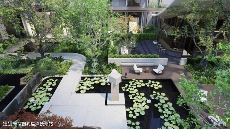 项目公区配置对标高端酒店,打造“艺术馆式”归家体验:入口界面:白金色现代立面+石材感幕墙,搭配莫奈“睡莲”主题下沉庭院;