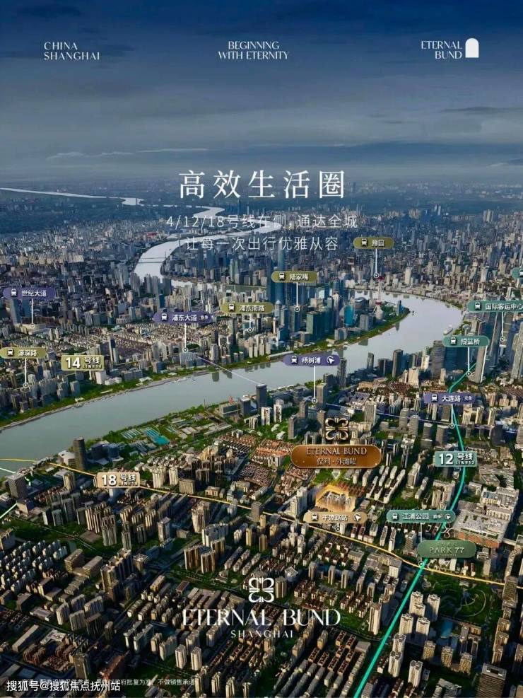 享受着上海最便捷的「交通路网覆盖」,顶流核心商圈快速通达。外滩曜出门即达18号线平凉路站,直线约800米直通北横通道;外滩启PARK77是12/18号线双轨交汇上盖。