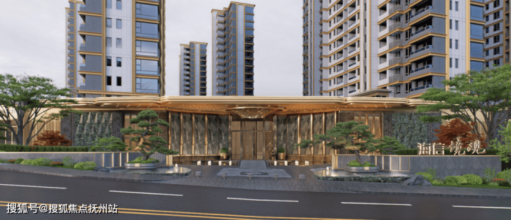 社区府门对标一线豪宅规制,约60米恢弘奢阔门庭,严选进口奢石对称铺陈,搭配鎏金质感铝板门头,将“天圆地方”的东方礼序与现代美学精妙相融。