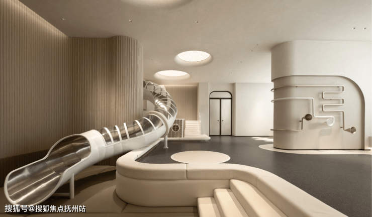 首层采用架空设计,打造会客、健身、儿童三大主题泛会所,涵盖全龄生活场景,全景落地窗将室外园景引入室内,实现自然与生活的无界对话,营造一个开放、自然、品质、关怀的公共空间。无论是太太的会客厅、运动元气场,还是儿童成长盒子,每一处空间皆成为滨江生活的诗意延伸。