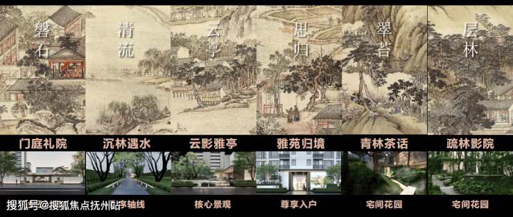 保利·姑苏瑧悦,大区设计灵感起源于《姑苏繁华图》,运用曲直、引隔、围透、藏露等造园手法,在有限空间内实现以小见大、步移景异的游园体验。将六大雅趣生活场景,植入到项目的景观设计中。以苏州古典园林造园手法,结合东方文人雅集,打造当代生活雅集。