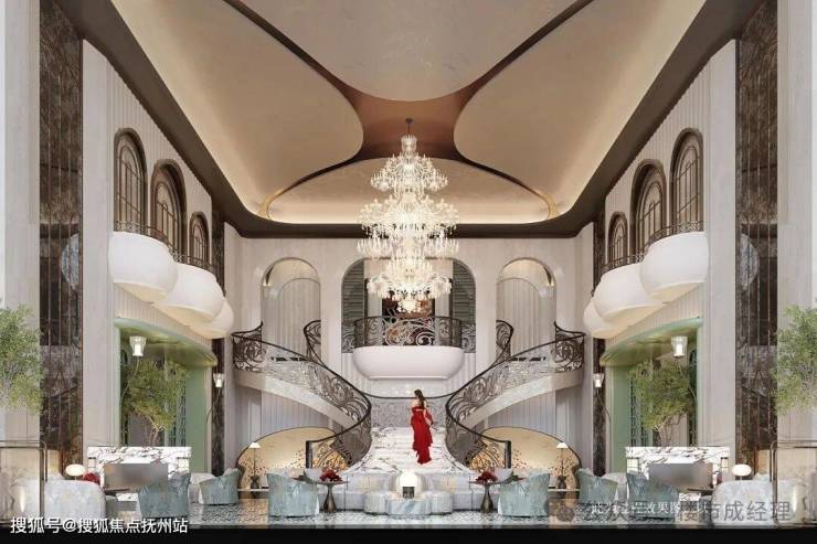 复刻厦门标杆项目建发・宸启瑞湖的海派美学基因:花瓣式艺术吊灯如飘落花雨点缀空间,南洋菱形釉彩地砖映出光影流转,Art Deco线条与珐琅彩玻璃交相辉映,螺旋楼梯如当代雕塑般盘旋而上 —— 每一处细节,都是对卓越品位的精准表达。