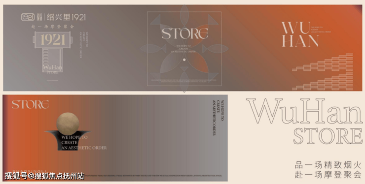 新街旧忆,融合共生。武汉城建·绍兴里1921在探讨商业包装的创意理念时,独具匠心地提出了“摩登生活剧场”概念。针对80延米的街景,以“戏剧布景”为灵感,紧紧围绕“老城根的文脉传承”与“新都心的生活引领”进行业态布局和品牌设计,旨在展现活力生活、传承文脉、完善居住配套等多重属性。