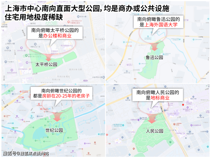 公园边界有限:公园的周长是固定的,能真正“直面”公园(而非斜视、侧视、有遮挡)的土地面积极其有限