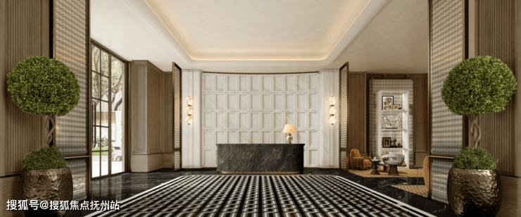 比如,挑高约6米的入户大堂、水系景观与艺术家共创作品交相辉映