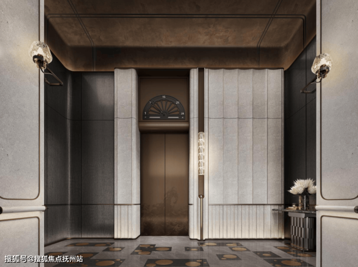 电梯厅的宠物识别按钮是艺术家定制款;入户门把手出自艺术家刘建华之手,用整块实心铜锭经锻造、打磨、电镀等多道精密工艺制成,握住的瞬间就是与艺术的触碰