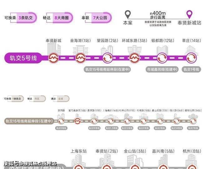 轨交网络: 5号线、15号线南延伸段(在建中)、市域嘉闵线南延伸段(规划中)、沪乍杭高铁(规划中)及南枫线(在建中)