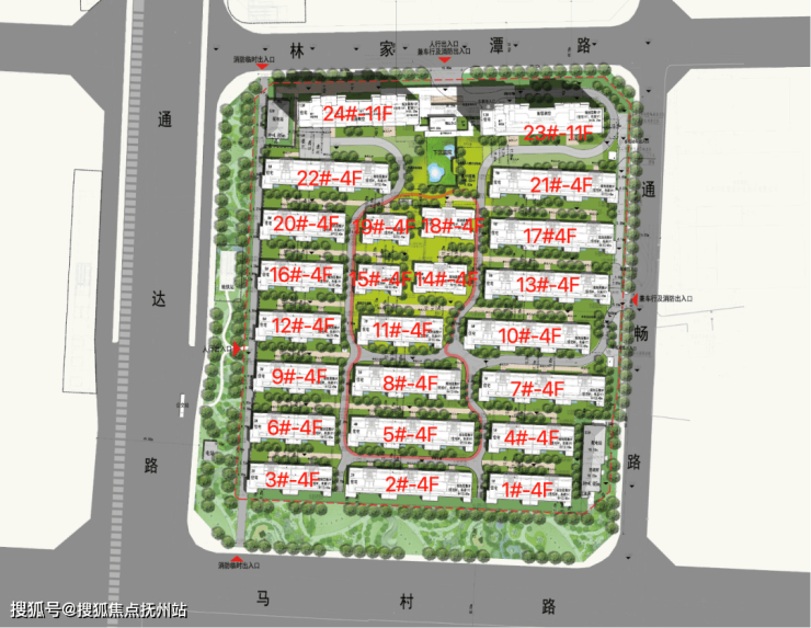 星河.湖西源启项目共规划了24栋住宅,包括22栋4层叠加别墅和2栋11层洋房。