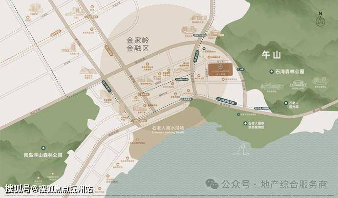 择址崂山区前海石老人板块(距石老人海边1公里),拥揽国家级度假区的海岸线与人文胜景;毗邻青岛金家岭金融商务区,繁华环享,依山望海,占据 绝版山海资源。
