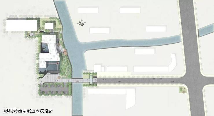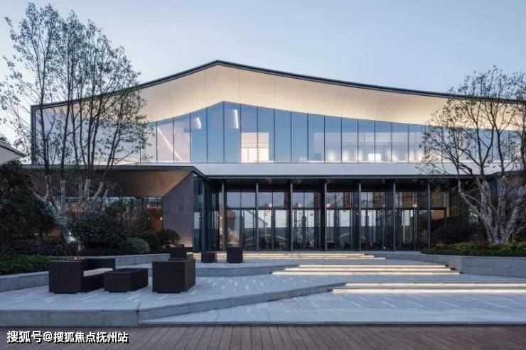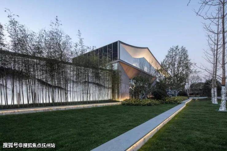 示范区后场面对水质良好的西周直江,设计团队打造了滨河景观带。沿建筑玻璃立面处设计的平台空间可用作室外洽谈区。景观设计采用现代市政手法,树阵广场结合草坪,局部种植花卉。人们于沿河外挑木平台上休憩,可观看沿河风光。草坪、花田、滨河景观打造出“花梗渔唱”之景。