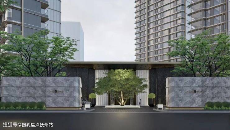 社区主大门约9*30米恢弘门庭尺度,约7米挑檐,全市南难得一见!设计灵感来自广州瑰丽酒店,门面采用洛阳精雕全黄铜面板,手工锻造打磨,两侧镶嵌“皇家白玉”,尽显奢华质感。