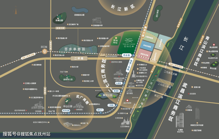 云泊江岸与二七一路之隔,同享城市资源,同频未来发展。解放大道精粹生活圈,武广、K11、协和医院、同济医院、武汉天地等转瞬即达,优越的地理位置才能更好释放产品的溢价能力。
