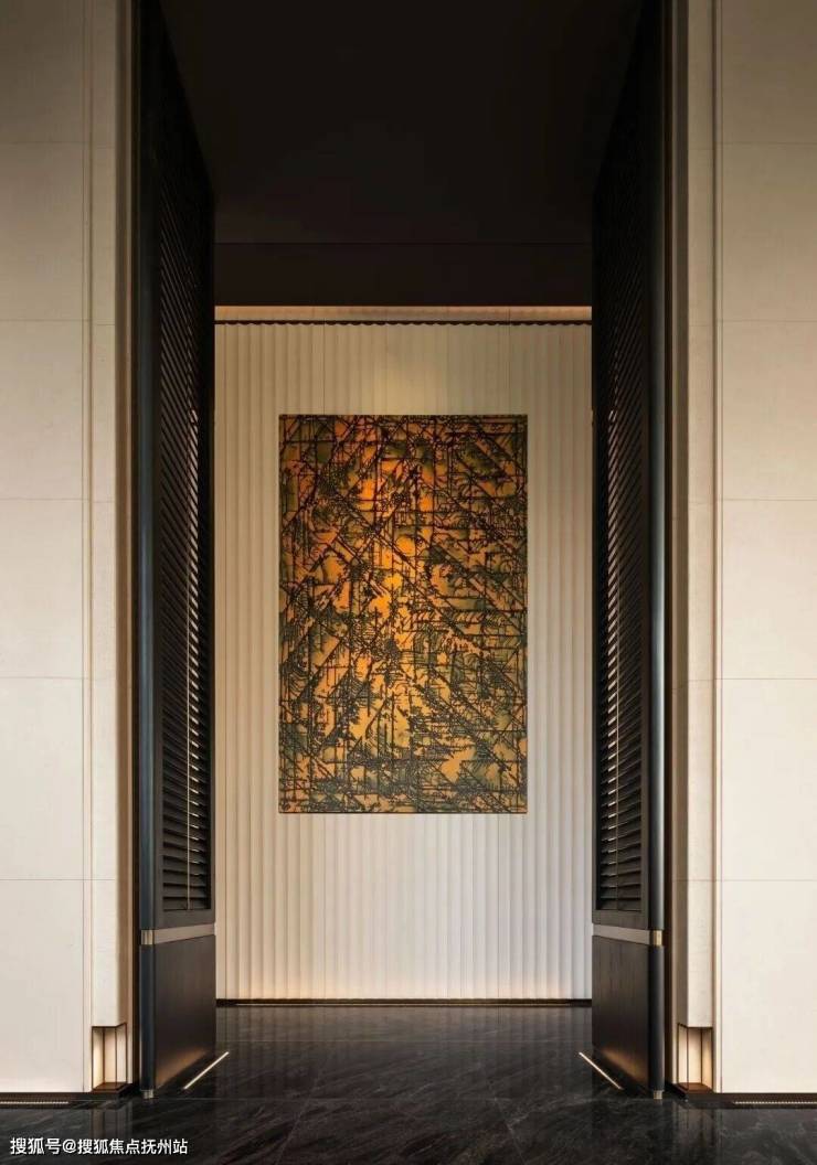 从高档材料的运用到开放式的空间布局,全屋奢石通铺,入户门厅匹配的是纹理低调的超白洞石搭配定制尺寸卡门,一眼看去,安全感满满。进门后,意大利进口石材全屋通铺,每一处地砖流水型纹路都能对应,需要提前至少2年预定的梅西同款进口芬迪白石材被用作电视背景墙,阔绰感不言而喻。