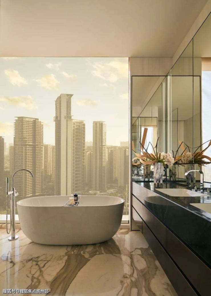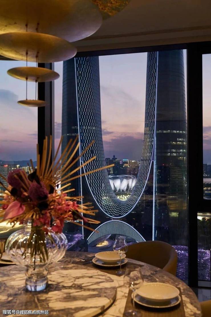 室内由 CCD(郑中设计事务所)打造,凸显了现代奢华和品味的精髓,从高档材料的运用到开放式的空间布局,270度“无柱转角落地客厅”站在Amber 98的样板间,奥体地标杭州之门近在咫尺,仿佛每一个建筑细节都触手可及。全屋通高的柜体,头顶的无边框灯具,将本就优越的层高直接拔高到了“奢享”的概念。