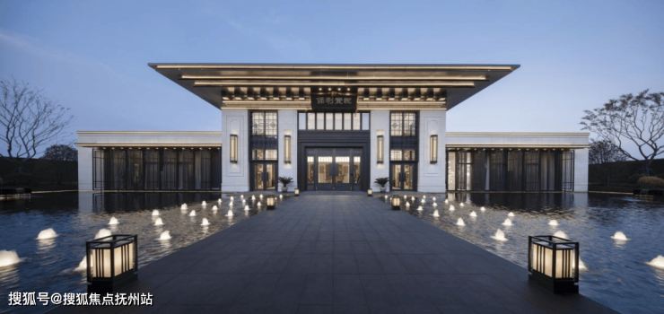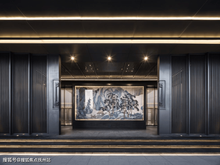 保利·堂悦,把传统尊崇礼制和中轴对称的仪式感建筑意向用在这里,融入酒店式迎宾礼秩,颇有深墙大院之感。设计遵循当代建筑设计风格的基调,前门入口线条简约但硬朗。简单质朴的配色,将恢弘大气的特质反衬得淋漓尽致。