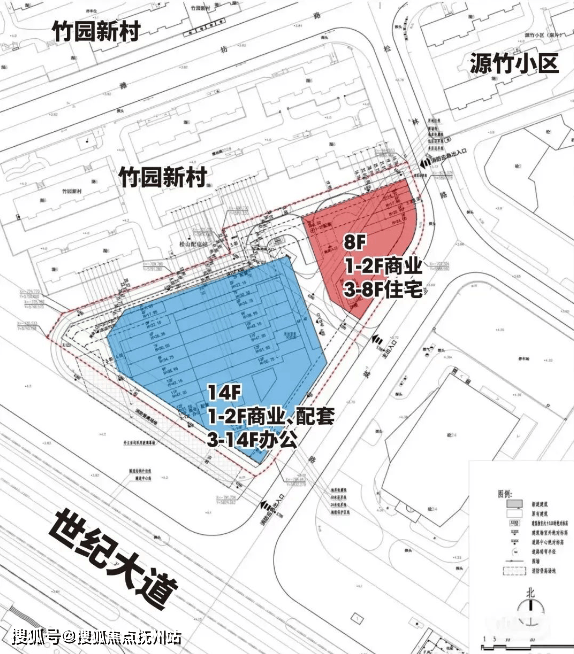 建设内容:西面的14层建筑,1-2层规划商业、配套,3-14层是办公;东面的8层建筑,1-2层是商业,3-8层是住宅。