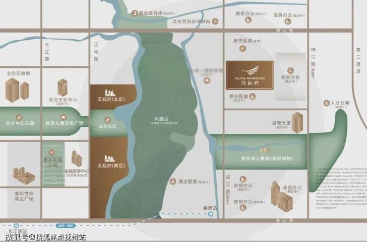 凤融府位于北仑凤凰山东约200米,恒山路与闽江路交汇处向南150米,总建筑面积为约7.3万㎡,打造精装16-23层高层,户型建面约80-126㎡,共654户。